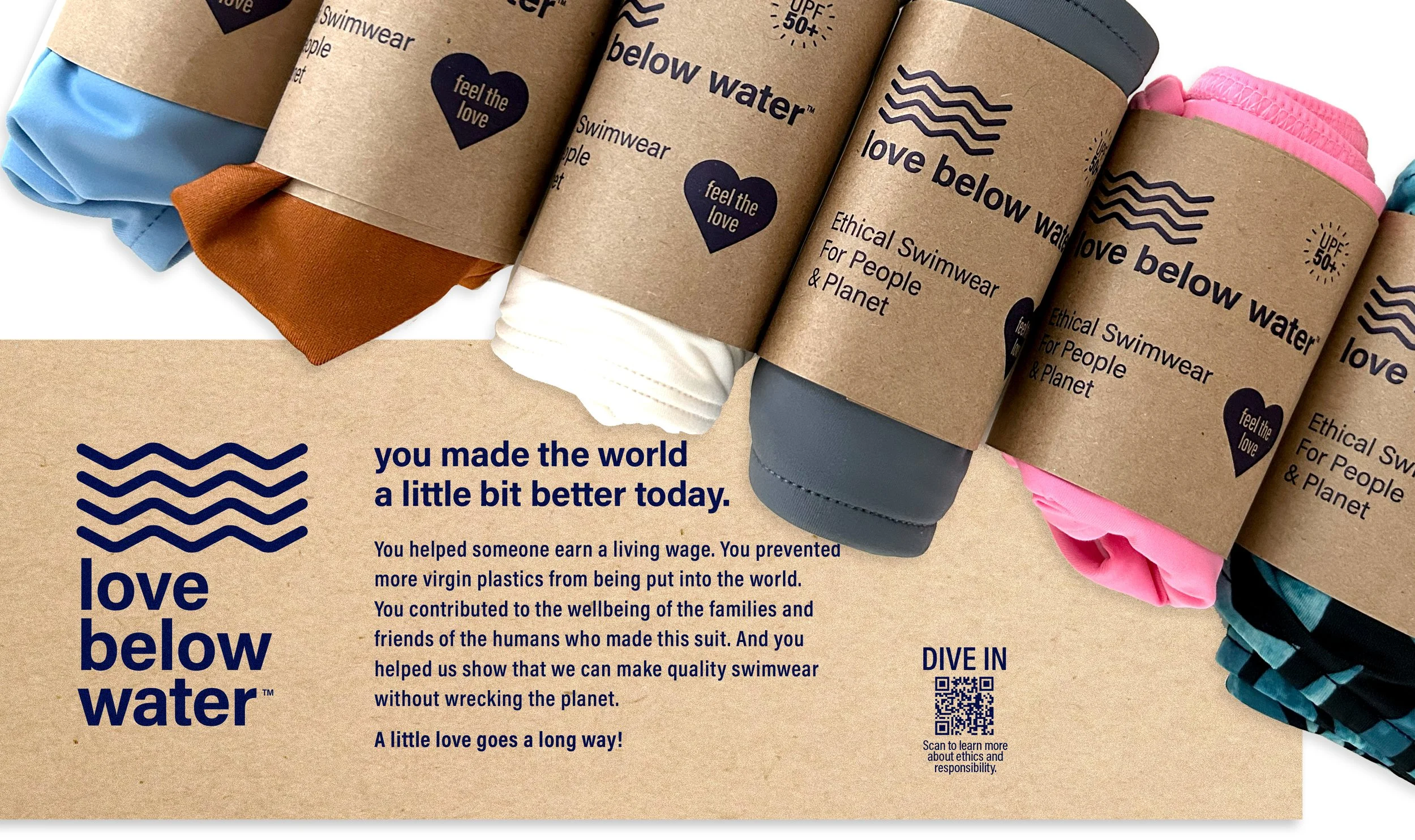Good design solves problems. My direct-to-consumer packaging for ethical swimwear is printed on recycled compostable paper, reduces shipping dimensions, and uses the opportunity to express brand mission.